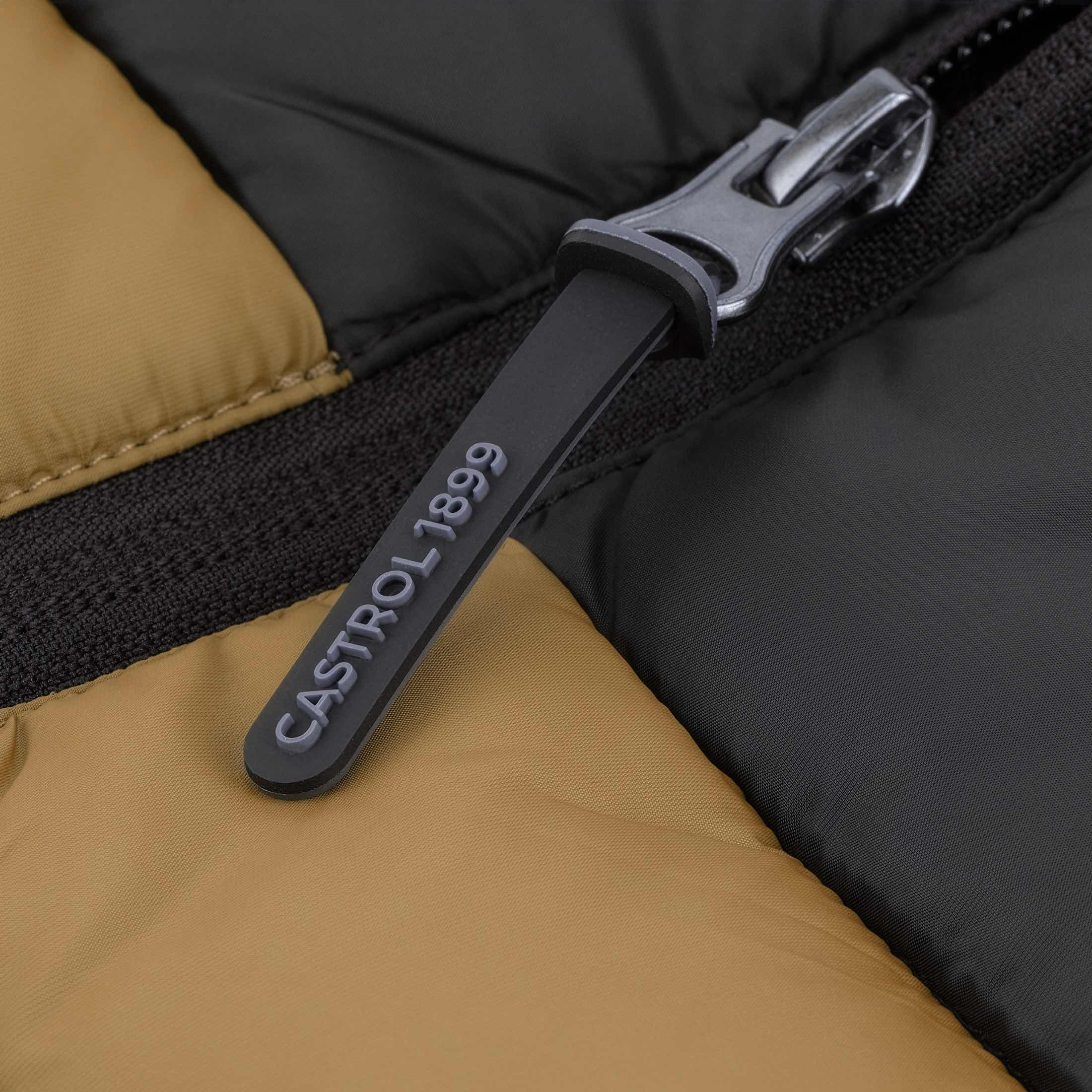 The Zenith Puffer Jacket is a modern cold-weather essential that combines lightweight comfort with reliable thermal performance. Featuring HEATech LITE insulation and a heat-reflective ThermoGold lining, it delivers effective warmth without added bulk. A new contoured quilting pattern with a subtle downward fold enhances fit and style, while the Durable Water Repellent finish offers protection against light moisture. Discreet “CASTROL 1899” branding on the elasticized cuffs completes the premium look.