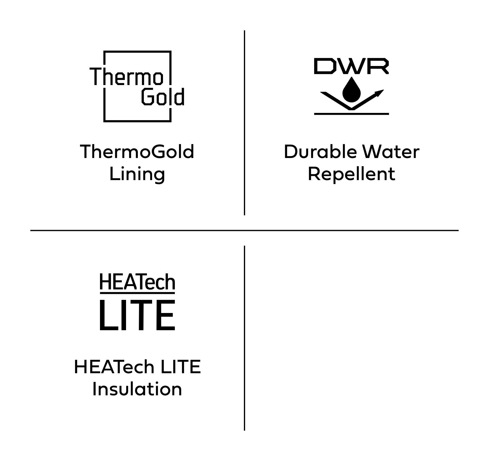 Lightweight thermal insulation: HEATech LITE padding delivers dependable warmth while keeping the jacket light and easy to wear.