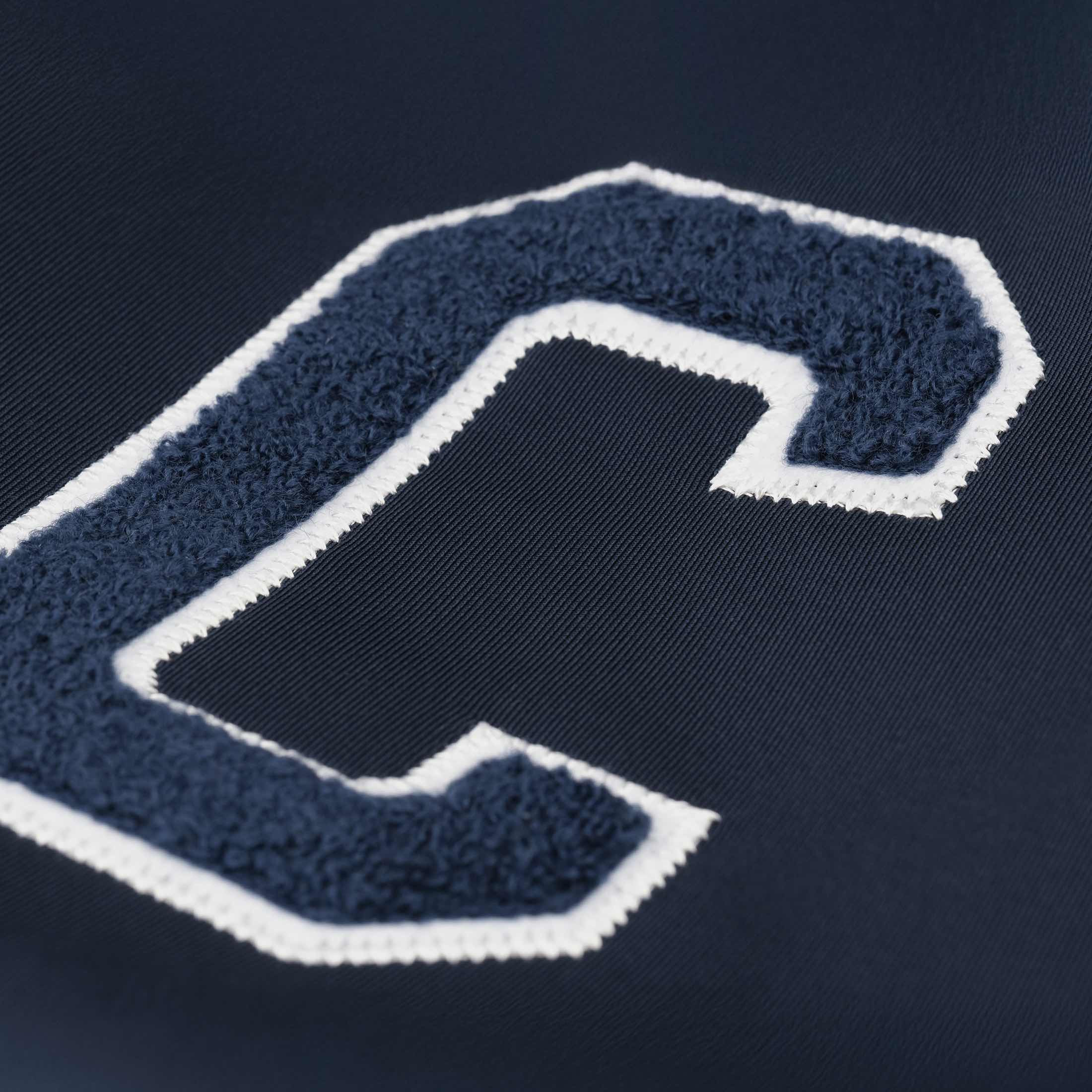 Snap button closure: Traditional snap buttons replace the zipper for an authentic varsity aesthetic and easy wearability.